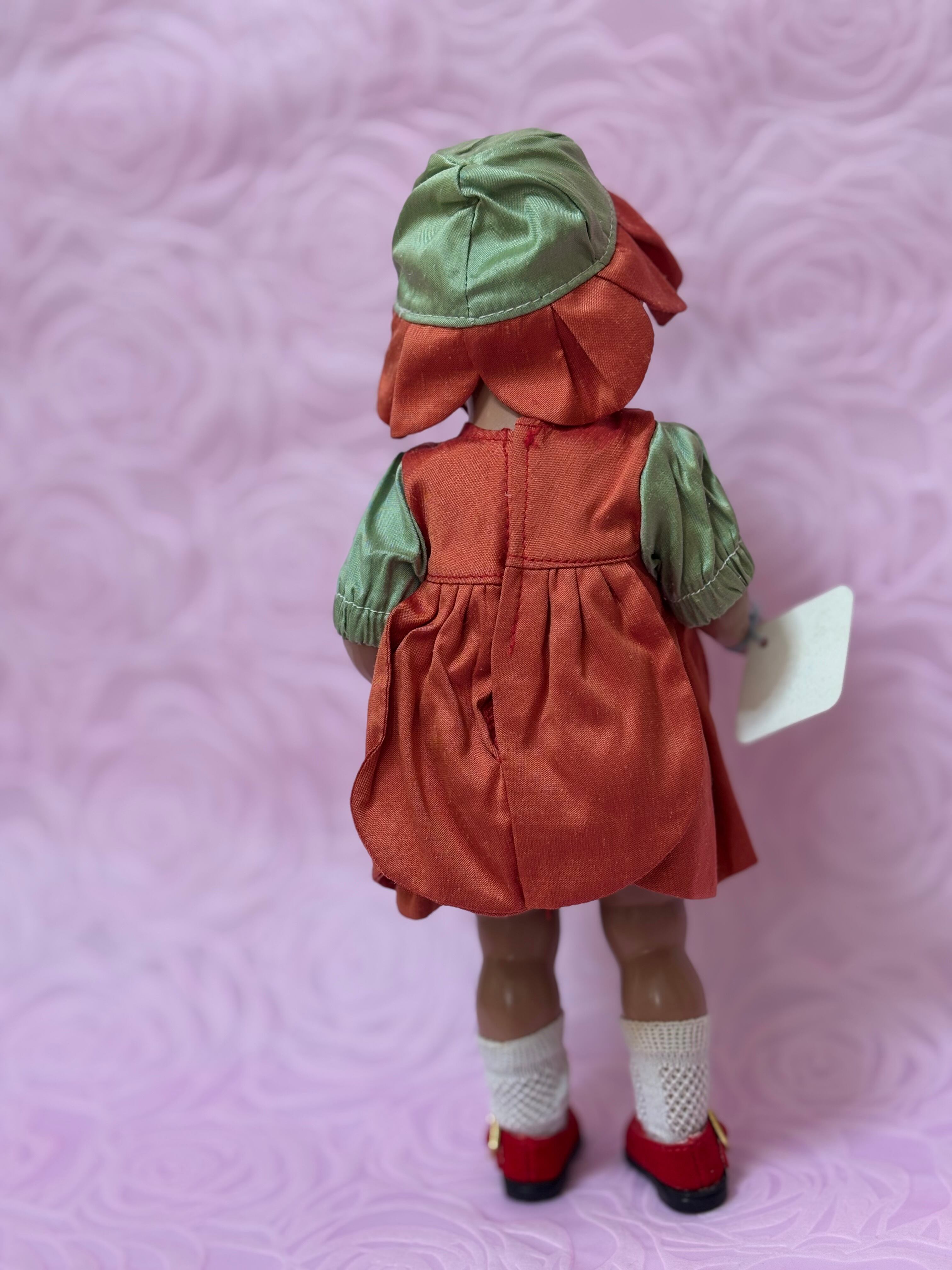 ドイツのシルトクレート社のドールです。赤いお花のコスチュームで可愛らしいです。紙タグがまだ残っていますので、そんなに古くはないのかもしれせん。