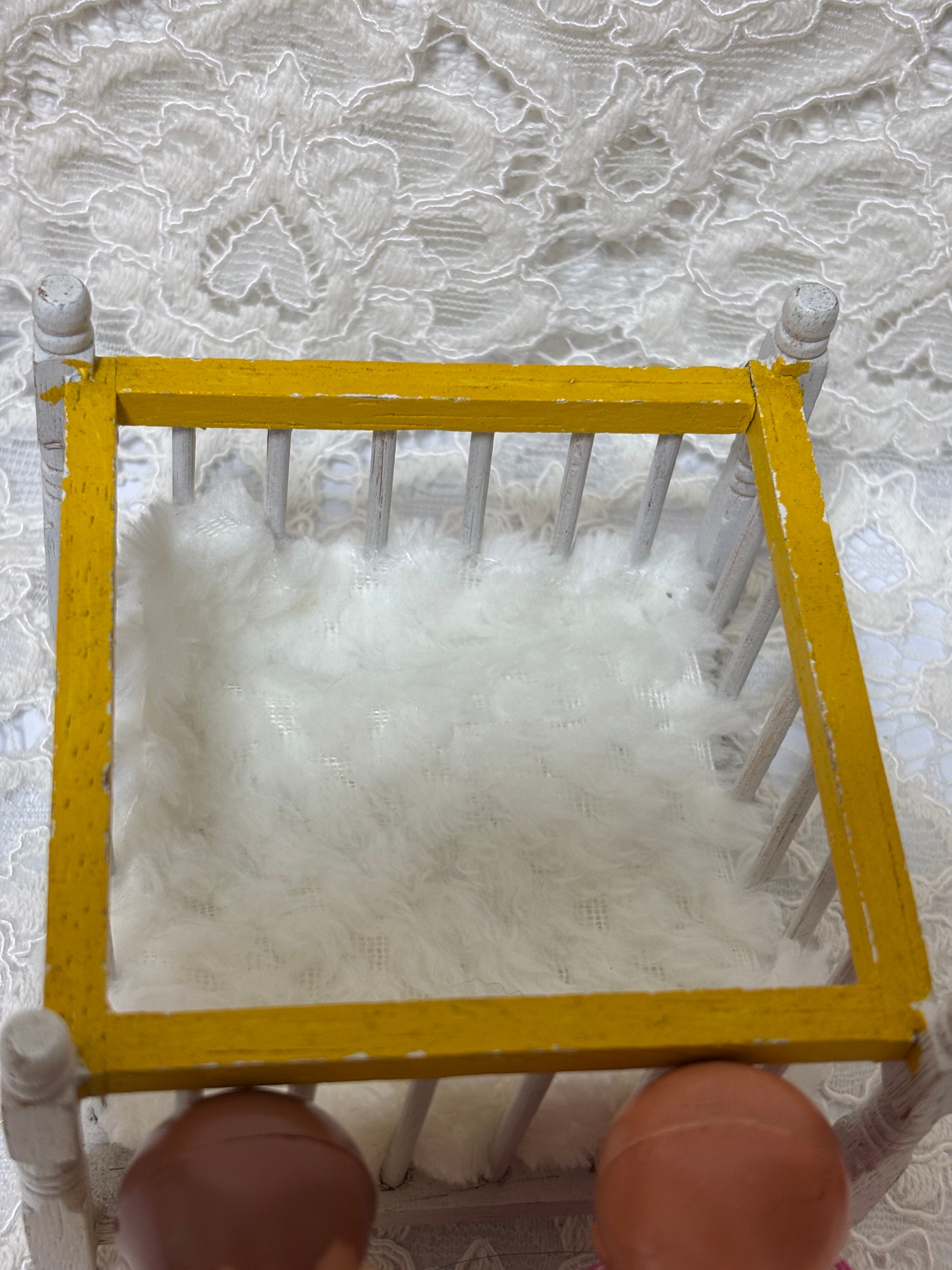 ドイツのシルトクレート社のベビー2体とベッドとガラガラのセットです。洋服はオリジナルではありません。2人とも色が違いますが、どちらが状態が良いのかはわかりません。2人の過ごしてきた年月と場所が違うのかなとは?思います。