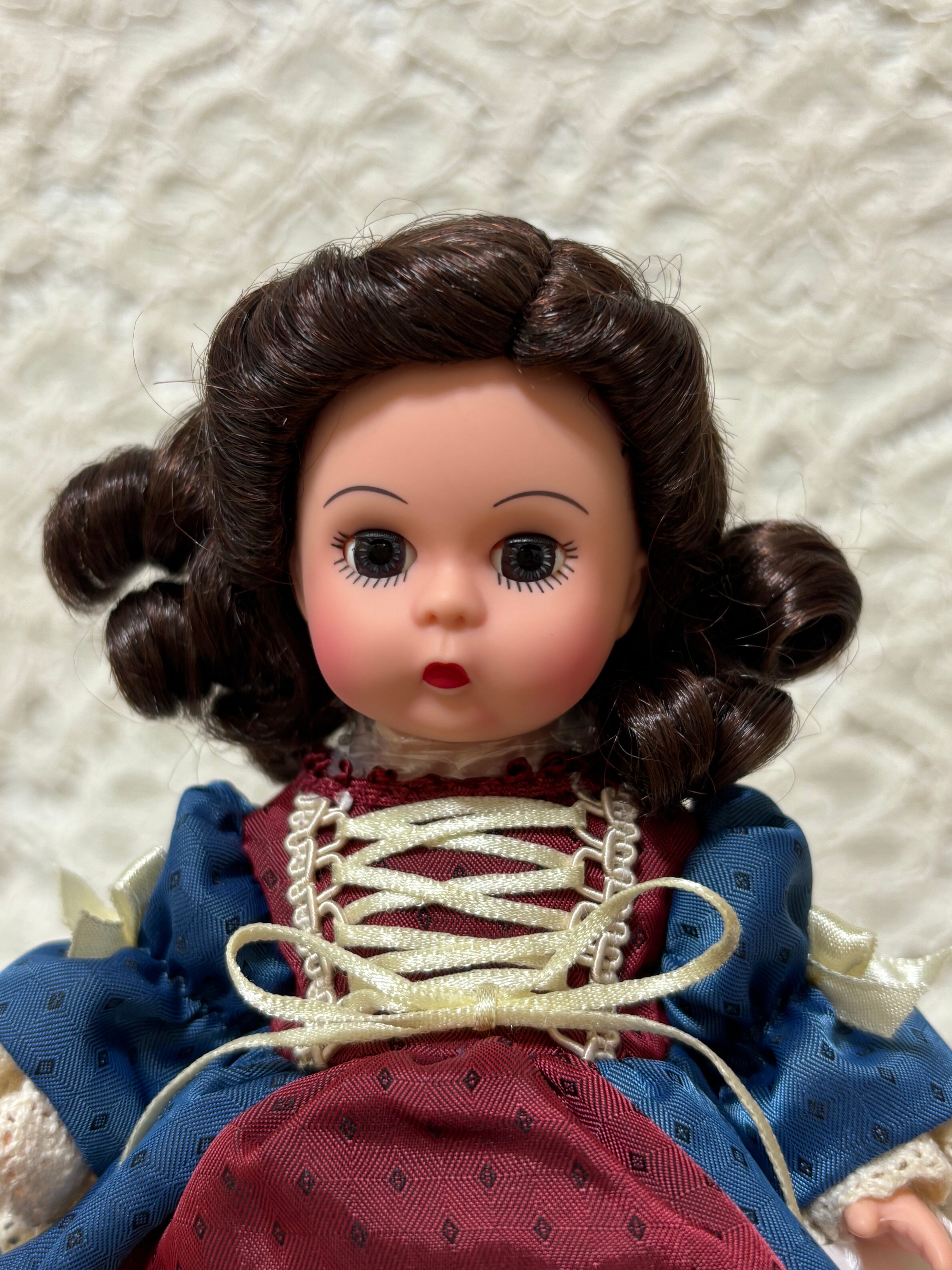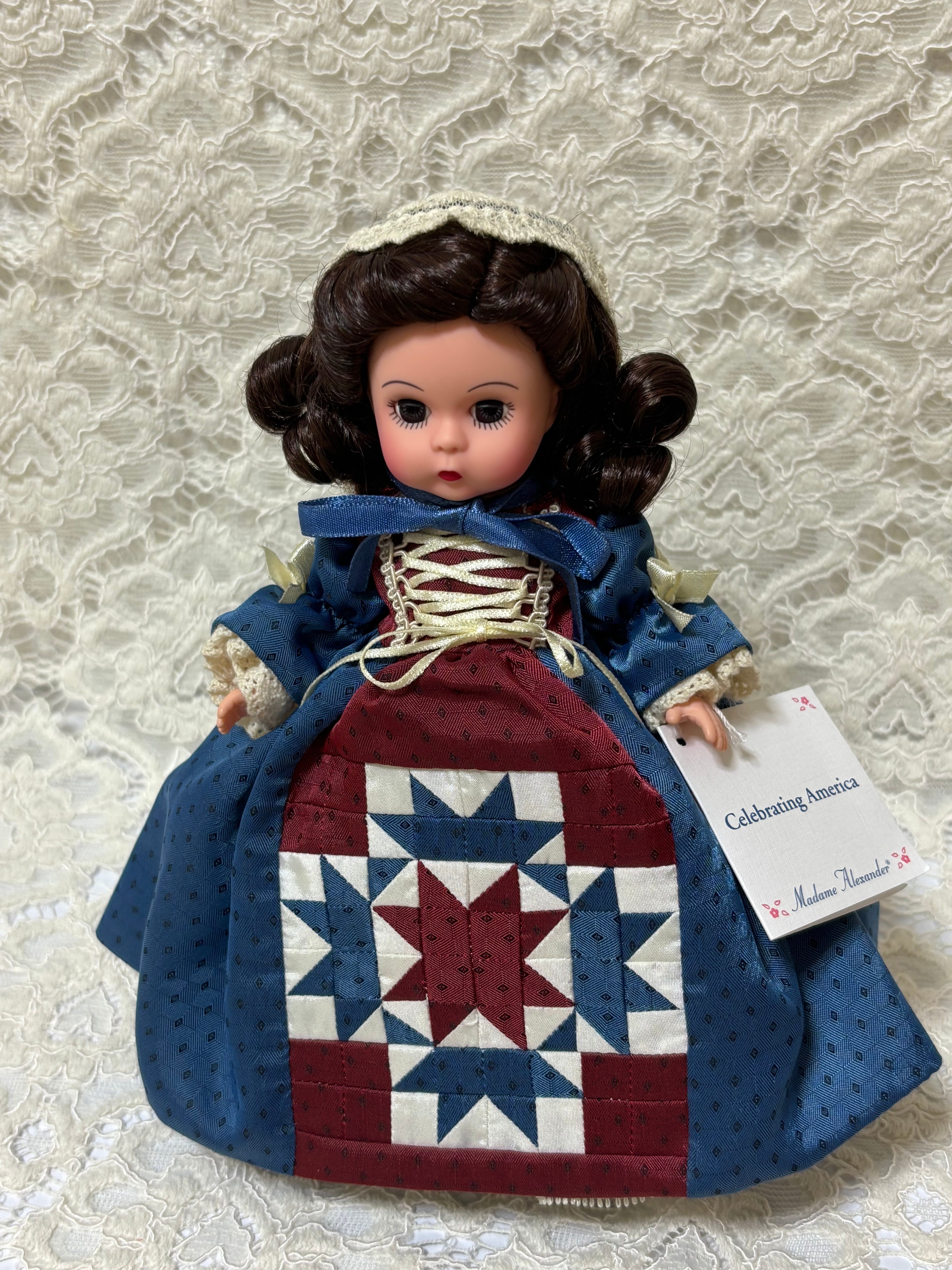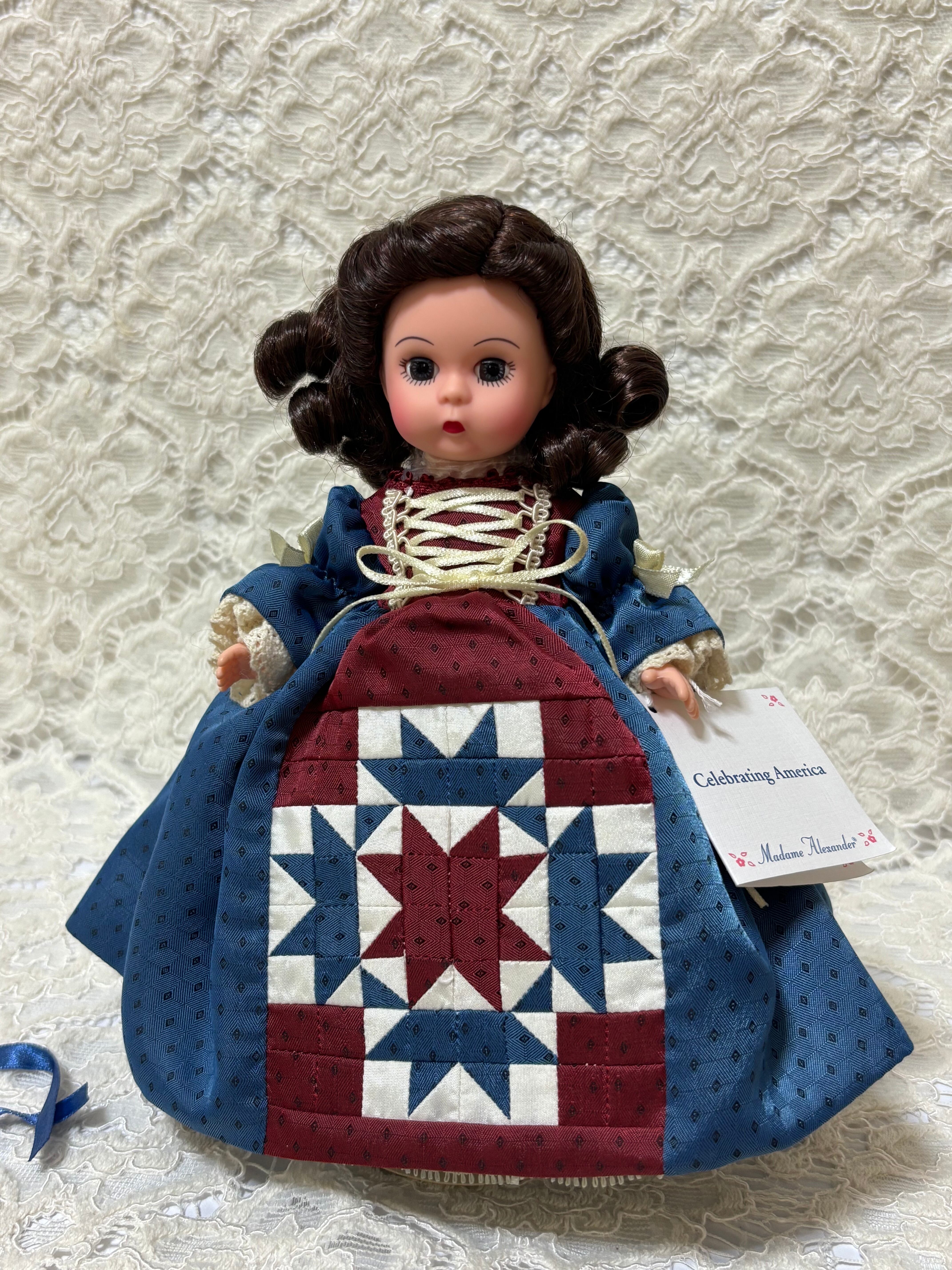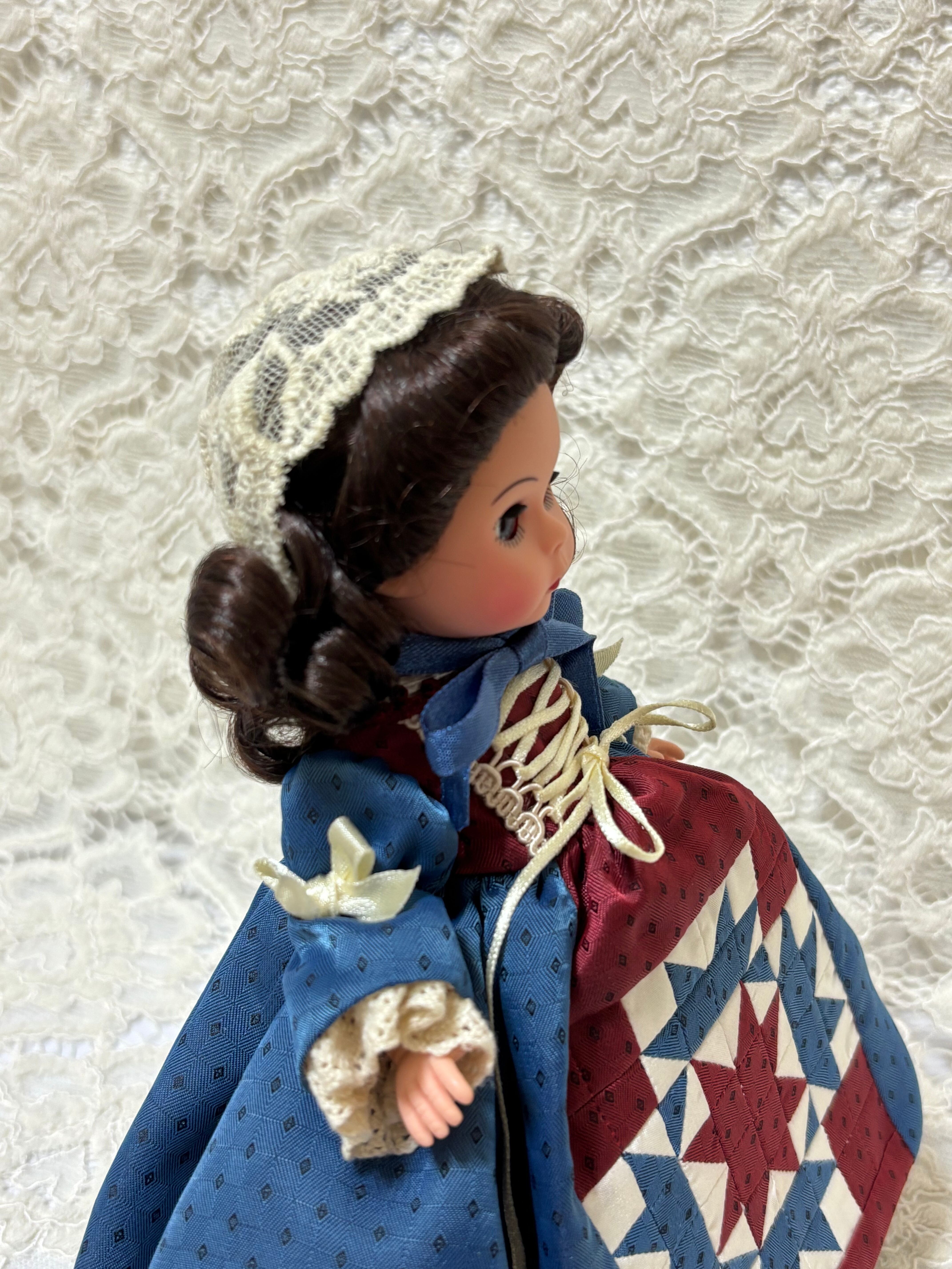 2004年にマダムアレクサンダー から発売されたドールです。パッチワークキルトドレスを着ています。ドレスの素材は綿ではありません。化繊です。