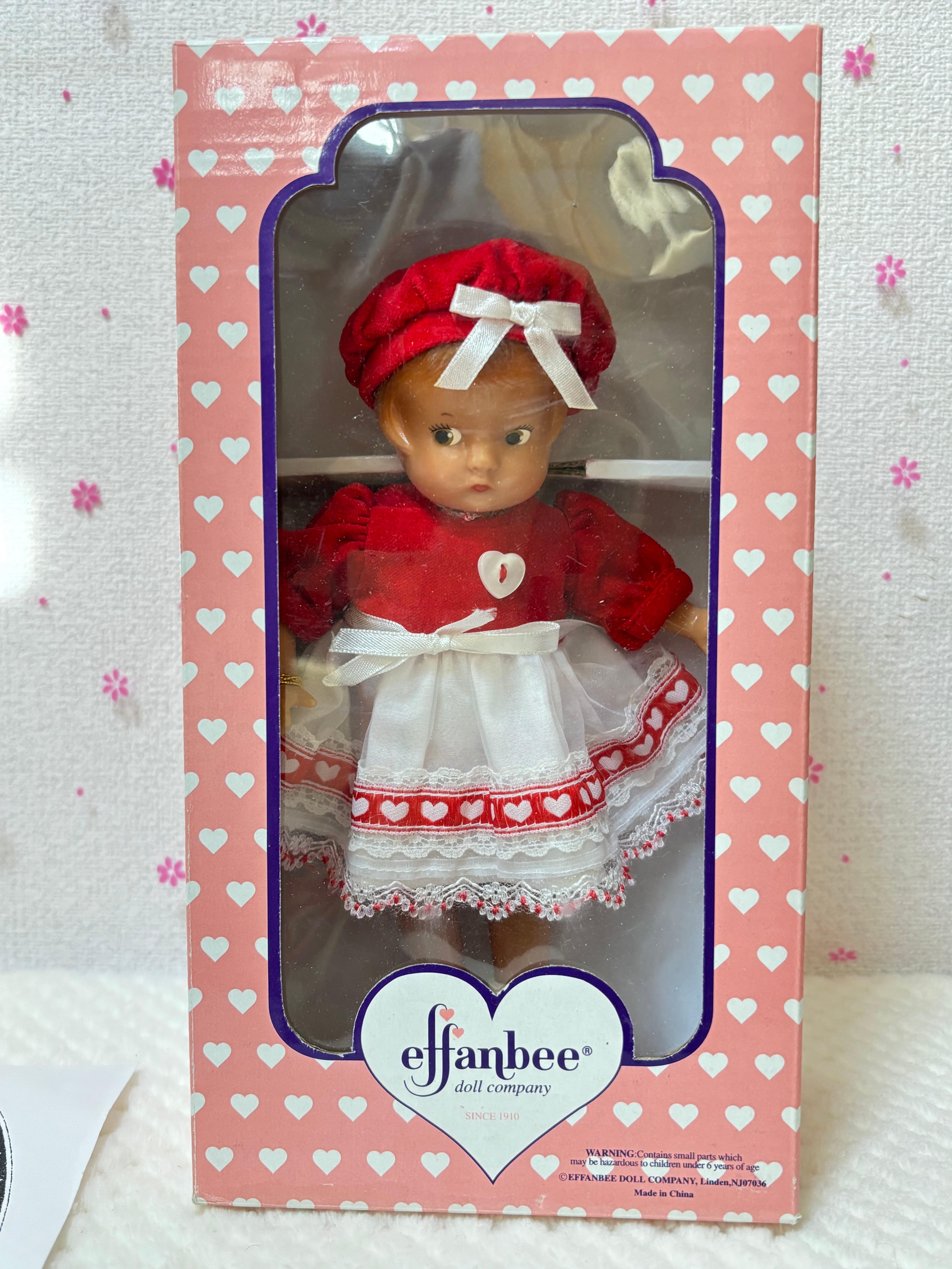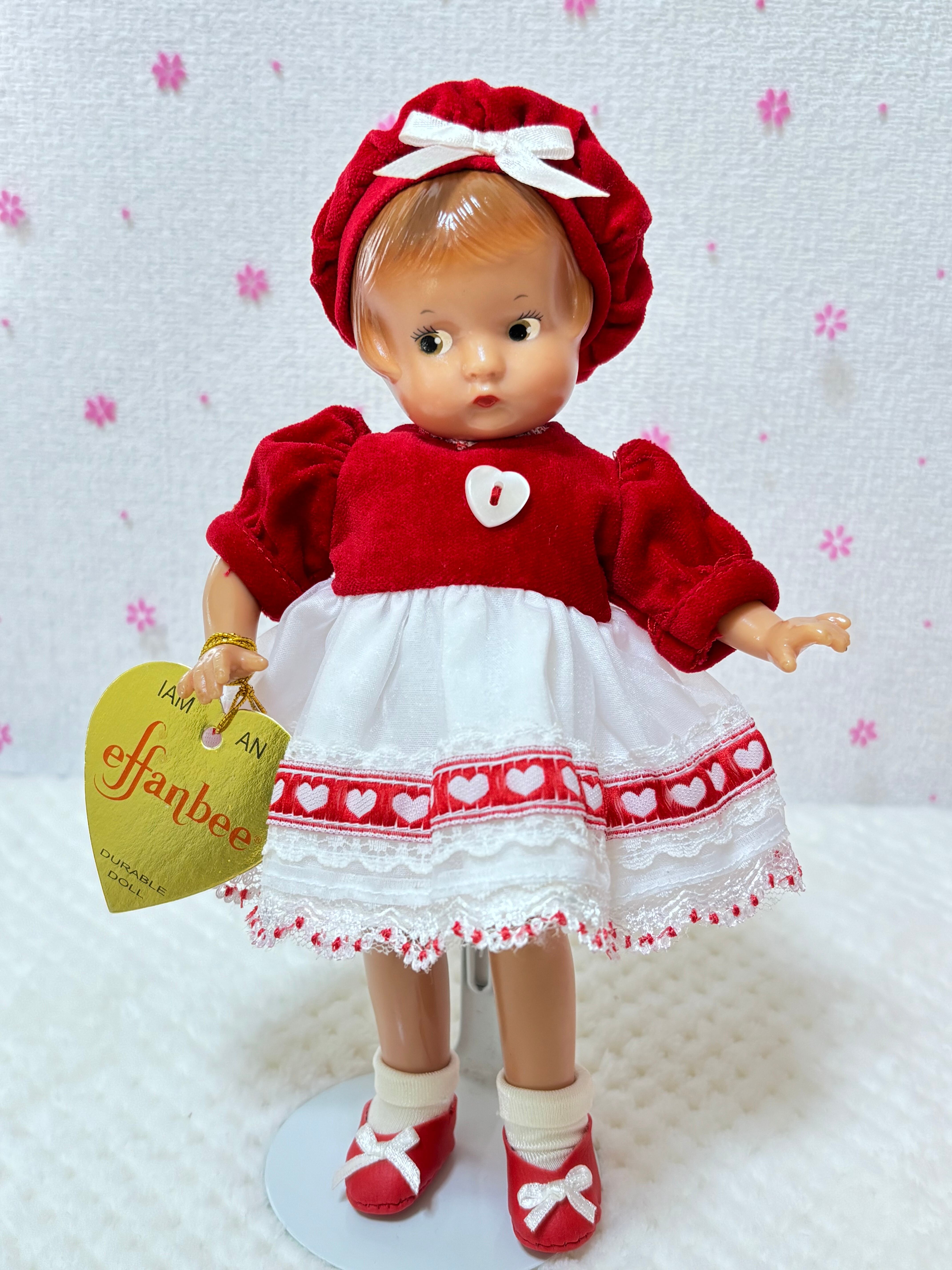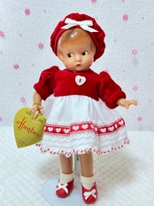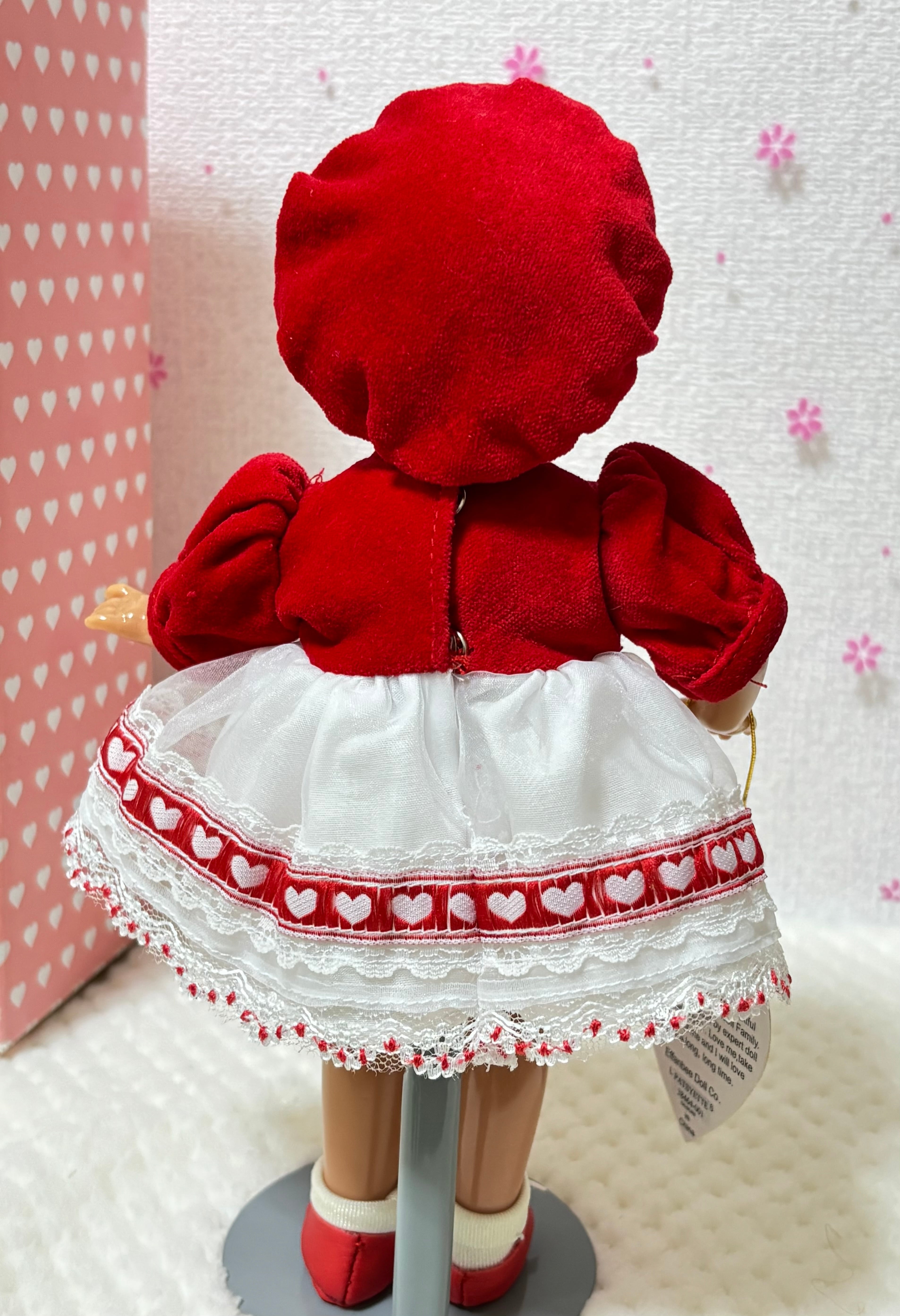 2000年から2001年にかけて1年の季節の洋服をまとったドールはThe Ashton-Drake Galleriesから発売されました。このドールは2月のバレンタインデーを意識してつくられたドールかと思います。このドールはEffanbee社が1931年にコンポジションドールを発売したのですが、そのドールのレプリカ版としてハードプラスチックで作られました。大きさは22cmです。
