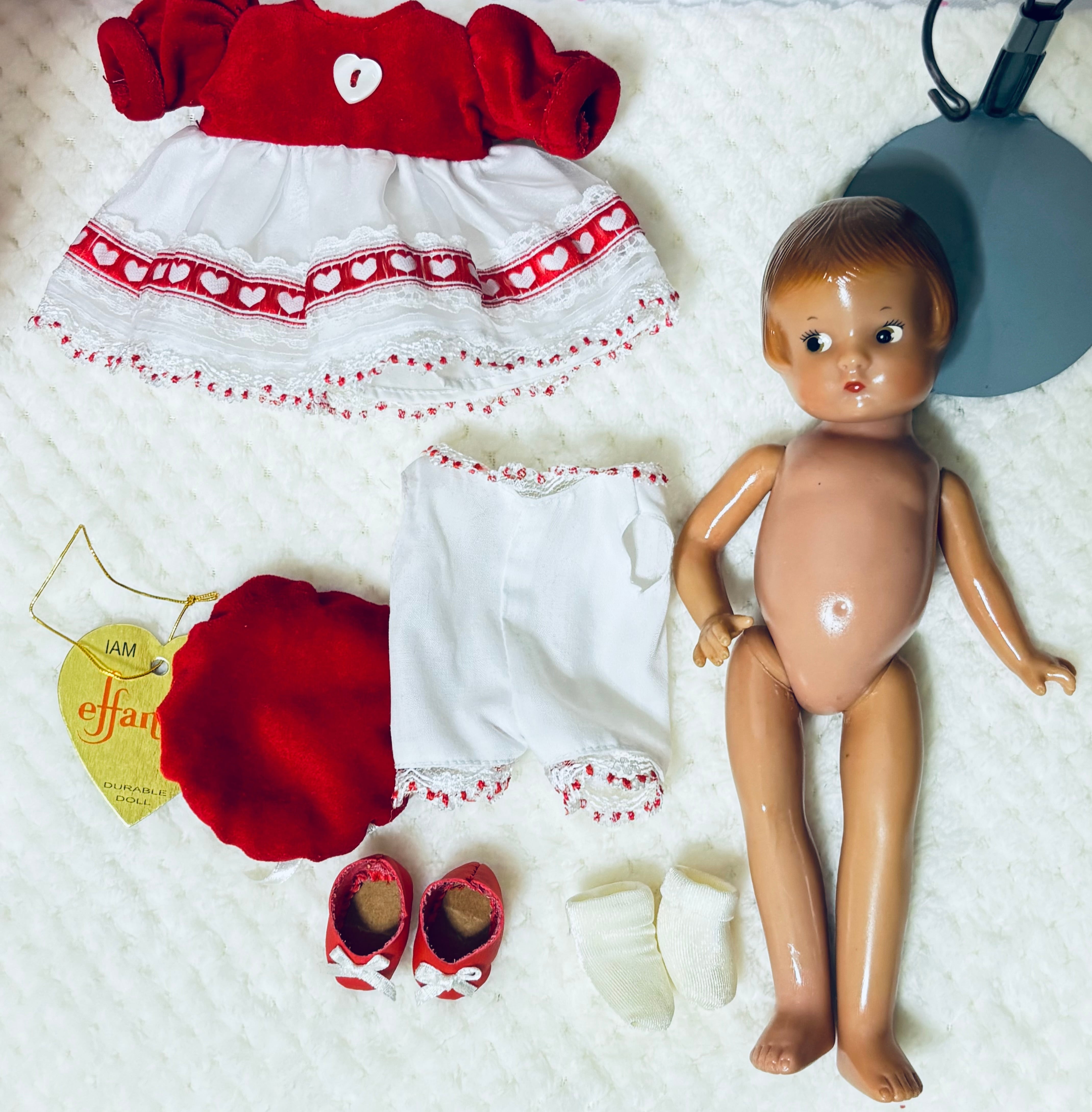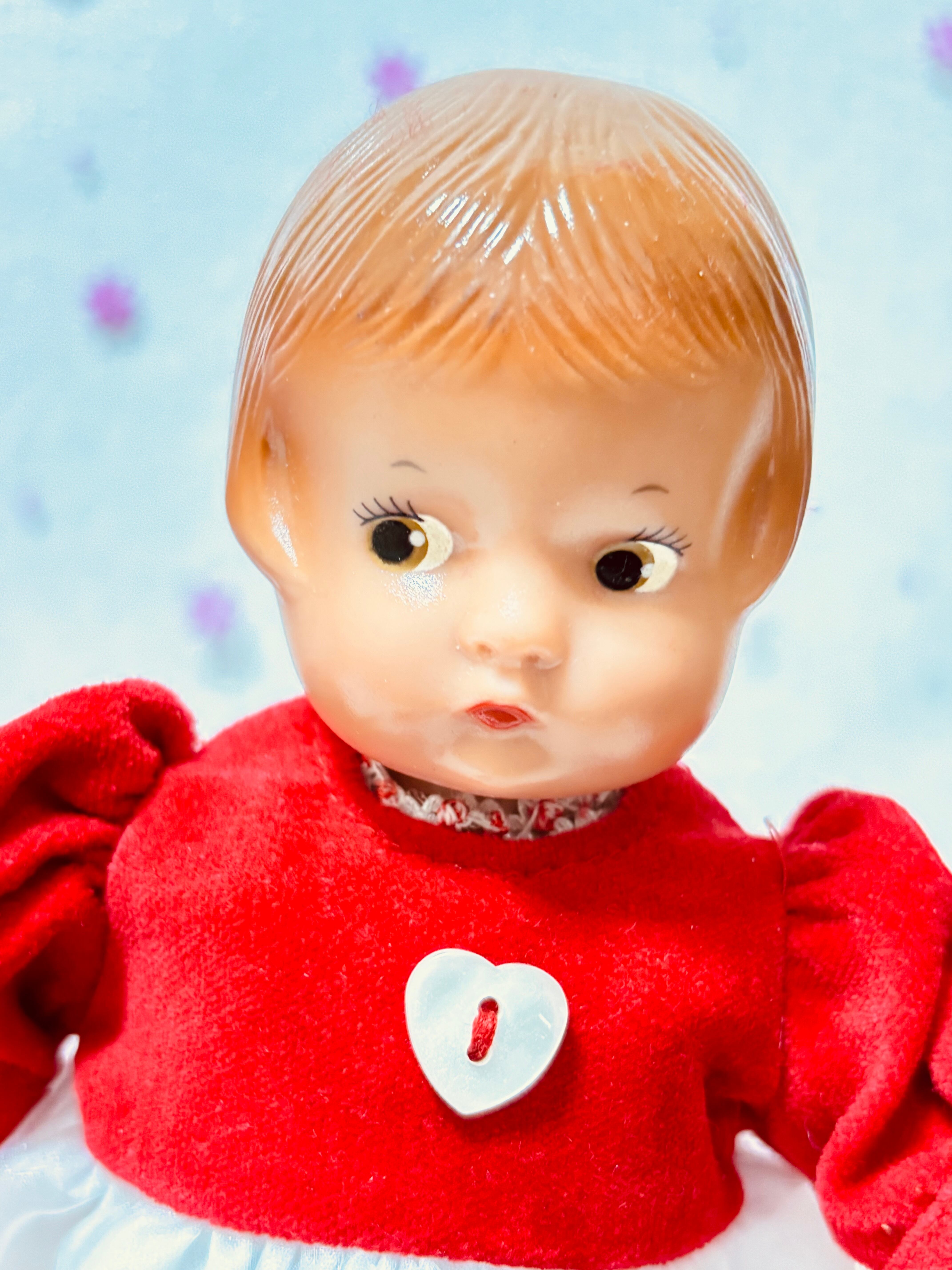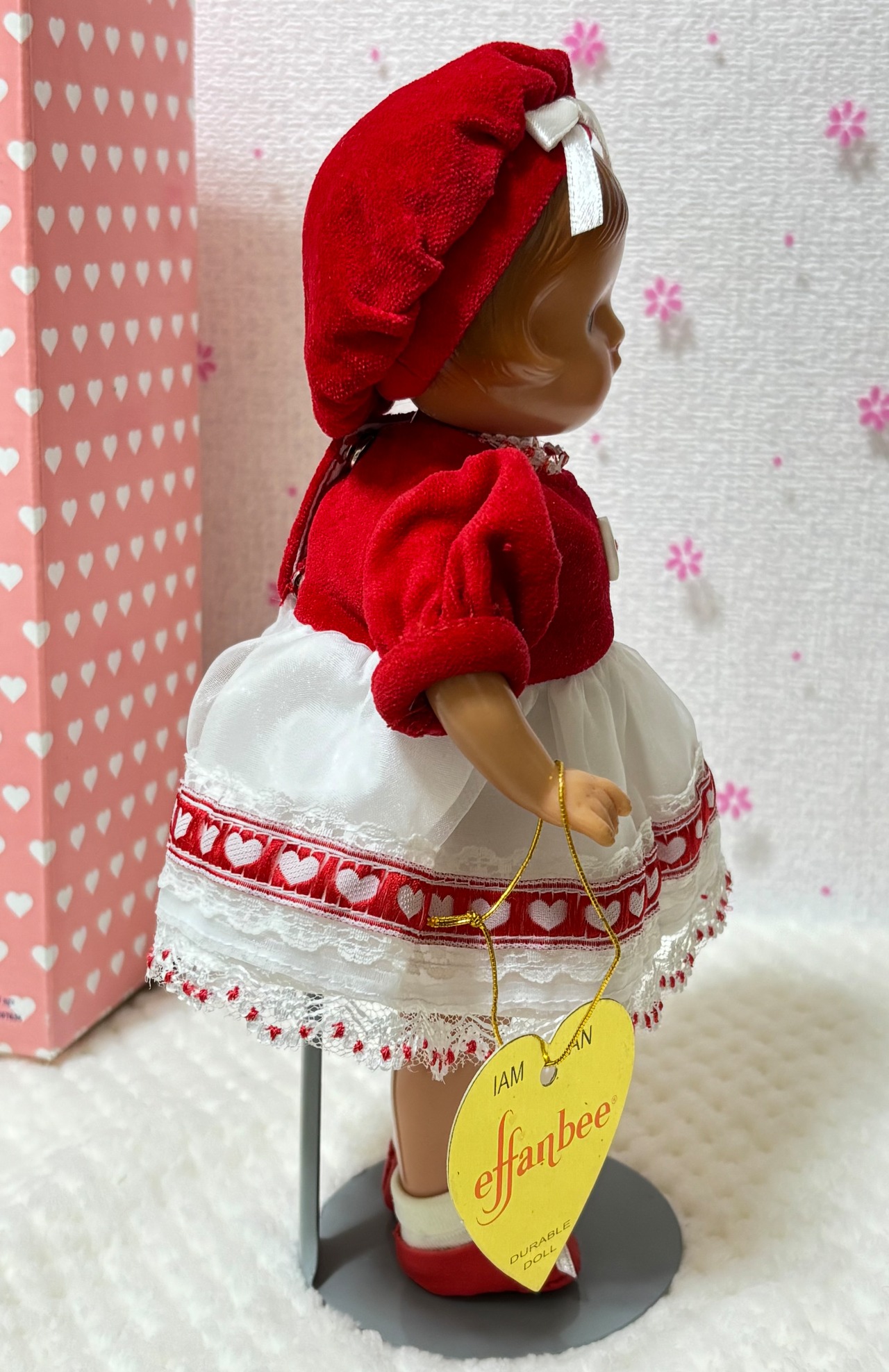 2000年から2001年にかけて1年の季節の洋服をまとったドールはThe Ashton-Drake Galleriesから発売されました。このドールは2月のバレンタインデーを意識してつくられたドールかと思います。このドールはEffanbee社が1931年にコンポジションドールを発売したのですが、そのドールのレプリカ版としてハードプラスチックで作られました。大きさは22cmです。