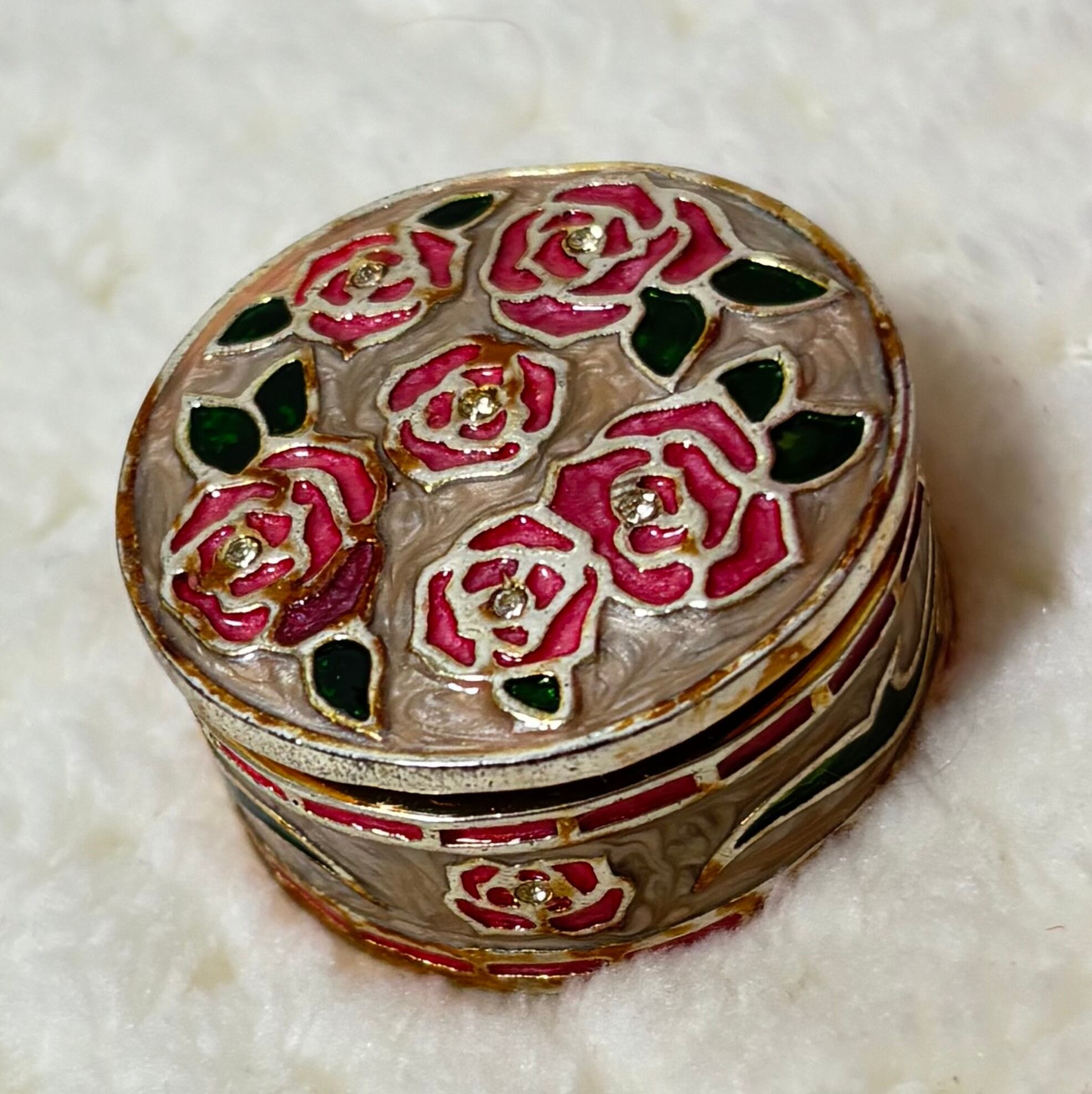 薔薇柄の丸いケースは重みがあり、このケース単体でお使いいただけるような気がします。しっかりとしたつくりです。