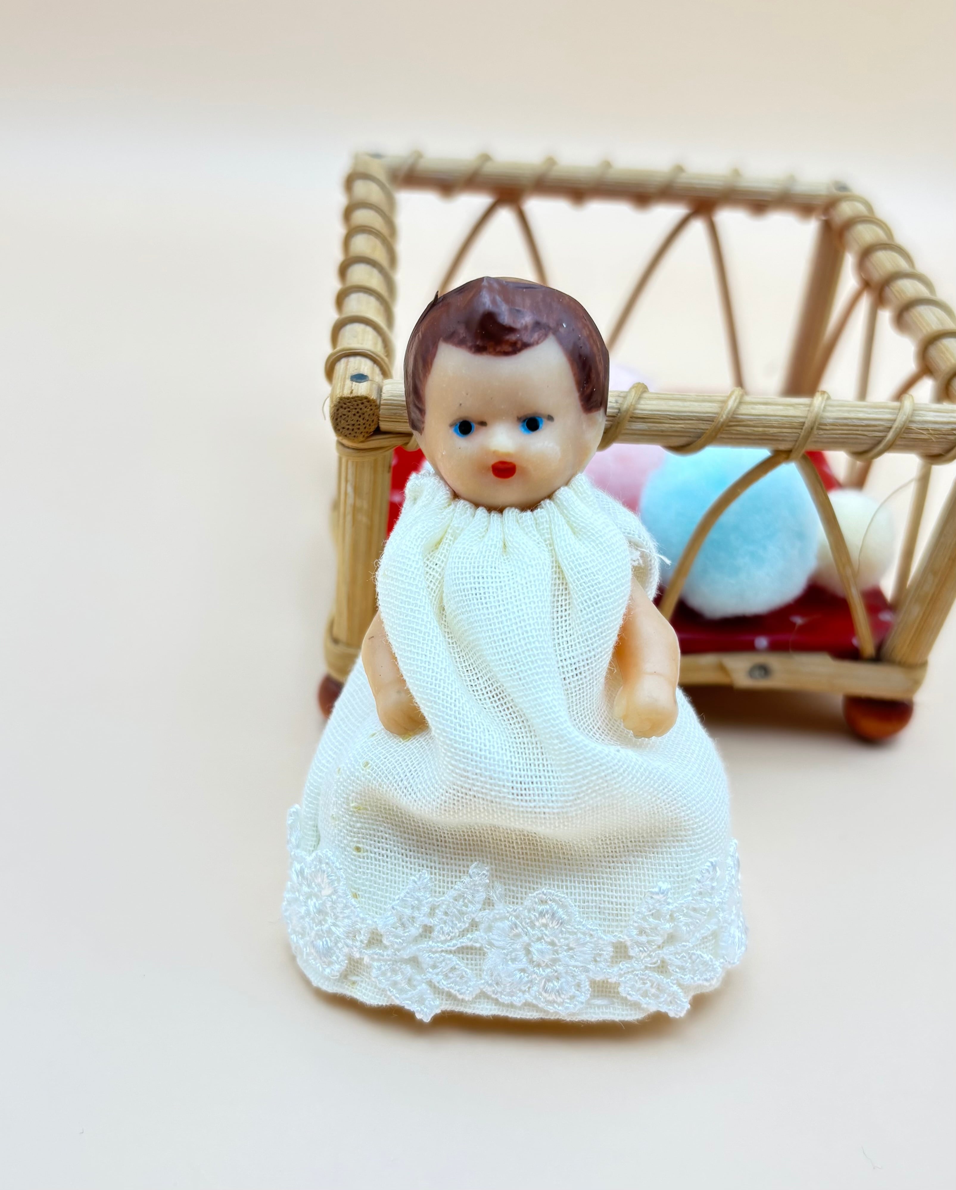このドールは1950年以降のヴィンテージドールです。ゴムまたはソフトビニールで出来ています。つくられた年代や地域によってお顔が違うのも面白いです。