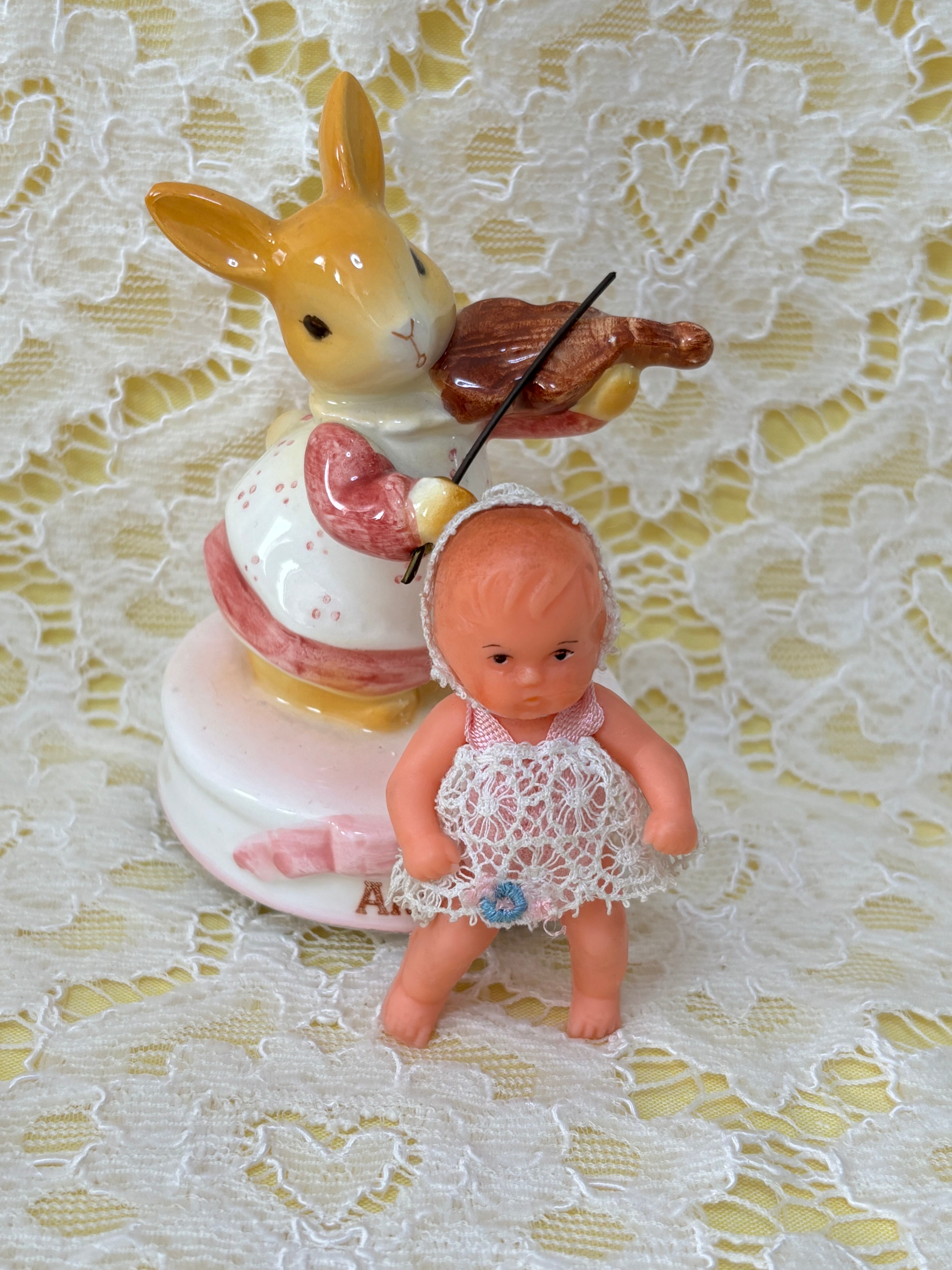 ドイツ製の希少価値の高い廃版「アリドール」。柔らかいラバー素材でつくられた可愛らしい7cmサイズのドールです。愛らしいお洋服と帽子が付いていて、まるでお人形遊びをしているような楽しさがあります。