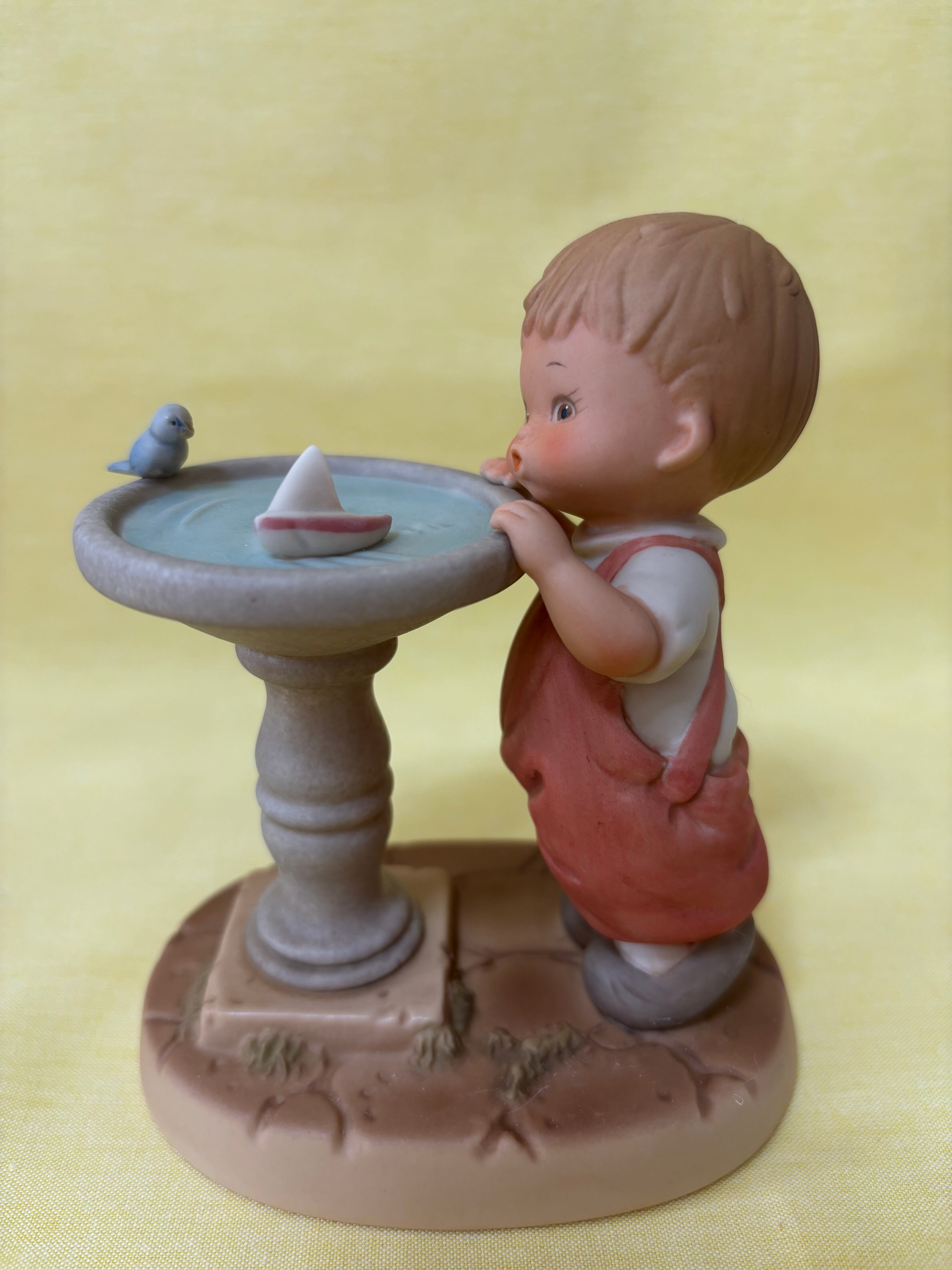 マーベルルーシーアトウエル 水飲み場にヨットを浮かべている男の子