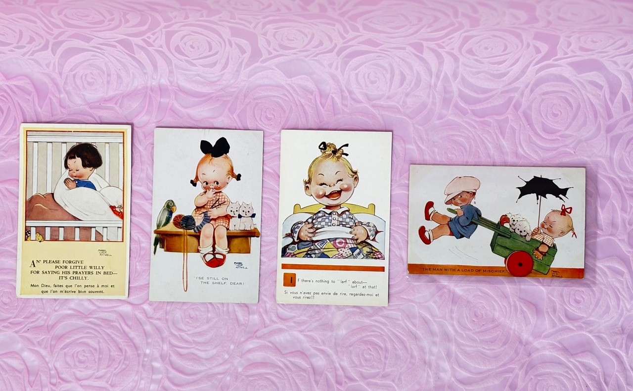 イギリスで1920-1960頃まで挿絵画家として人気を博したマーベルルーシーアトウエルのポストカードです。生き生きとした子どもの絵が描かれたいます。