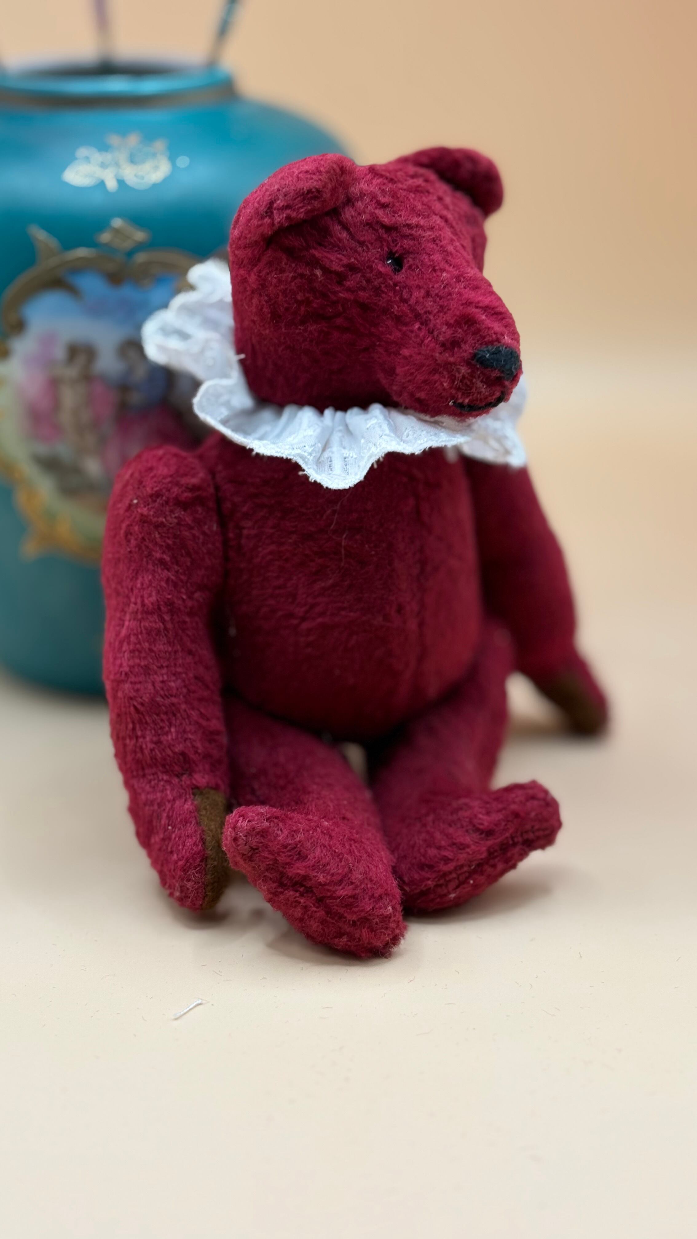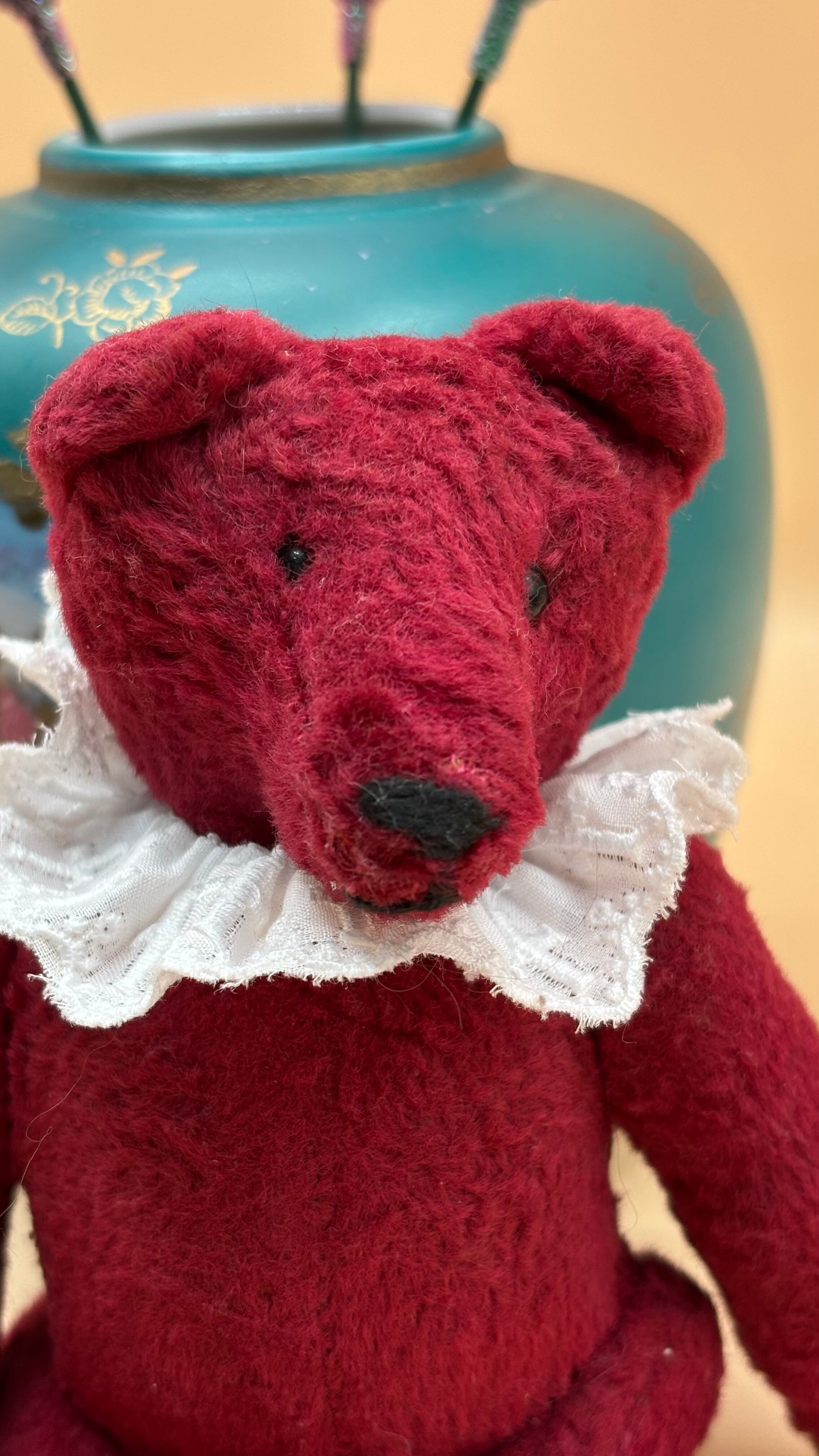 イギリス製 ヴィンテージ 真紅のテディベア 蝶ネクタイ、ベスト付き