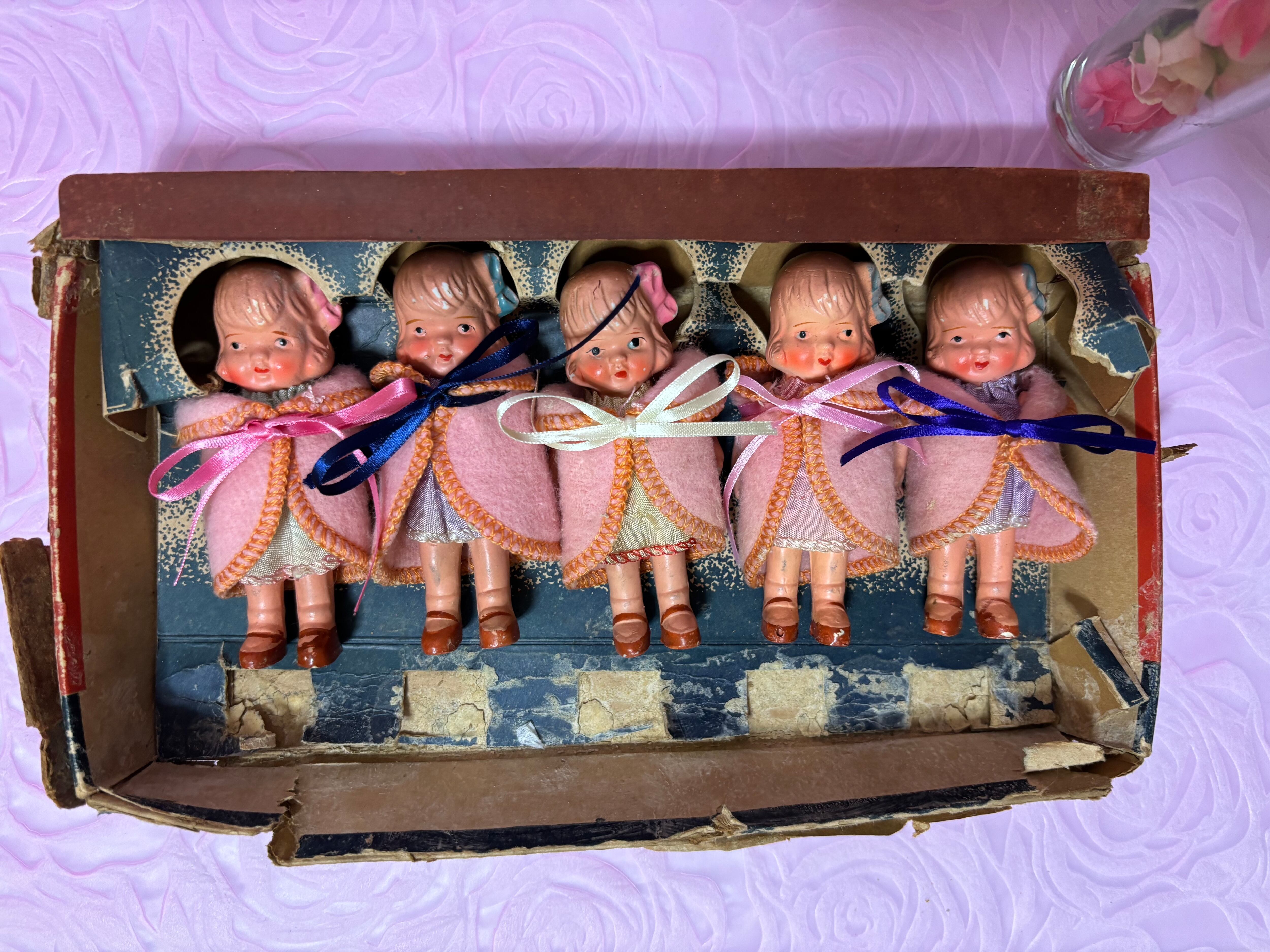 フエルトをコートに見立てて、細い金属で巻かれていたのですが、私の元に来たときは、金属がボロボロに折れていましたので、リボンに付け替えています。